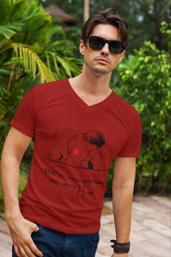 YOU are not just in my heart Mens Tshirt V Neck Half Sleeves
